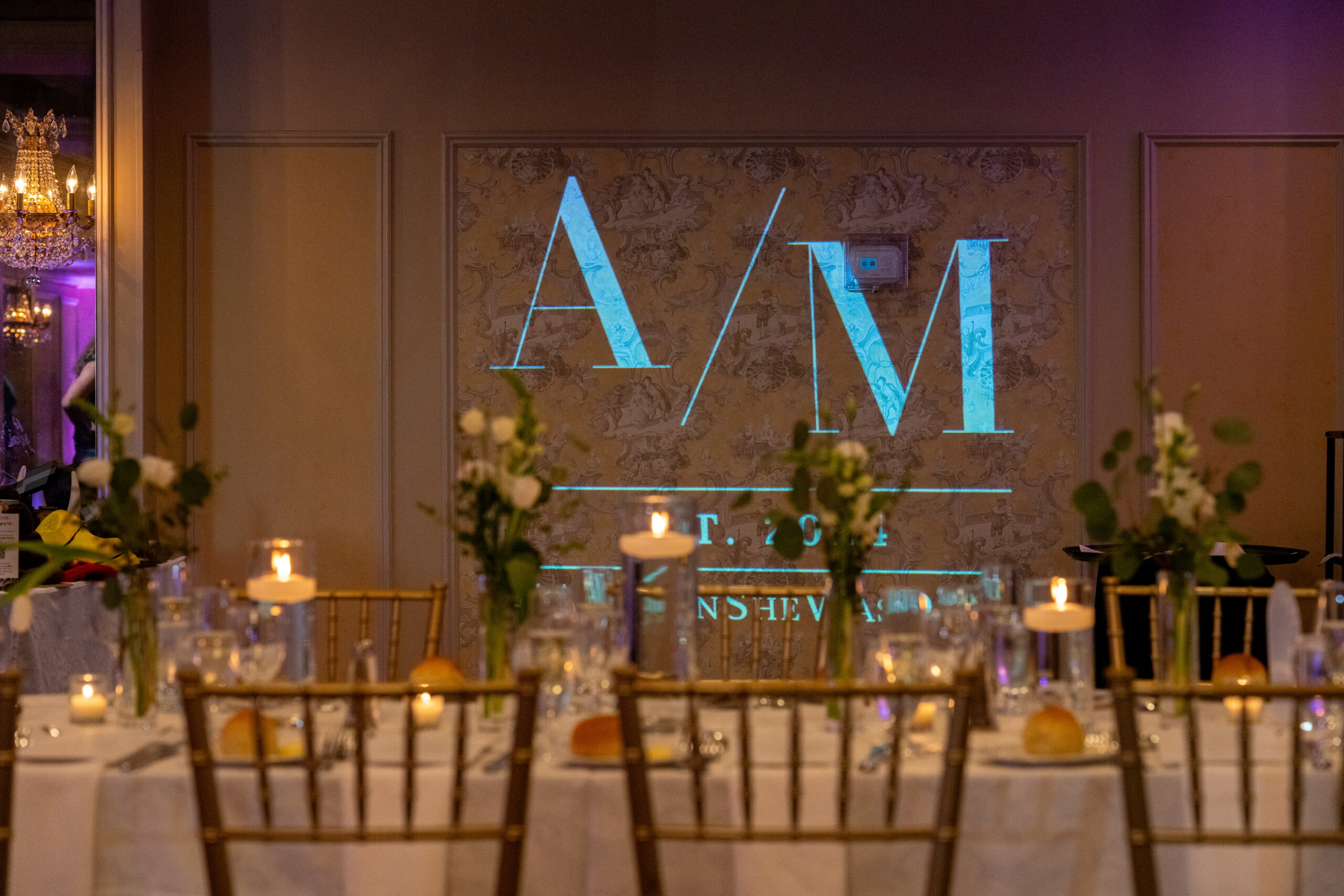 With precision and creativity, we craft each moving monogram to reflect your personal style, ensuring that every detail aligns with the theme and mood of your event. It’s not just a projection; it’s a statement piece that enhances the overall ambiance.